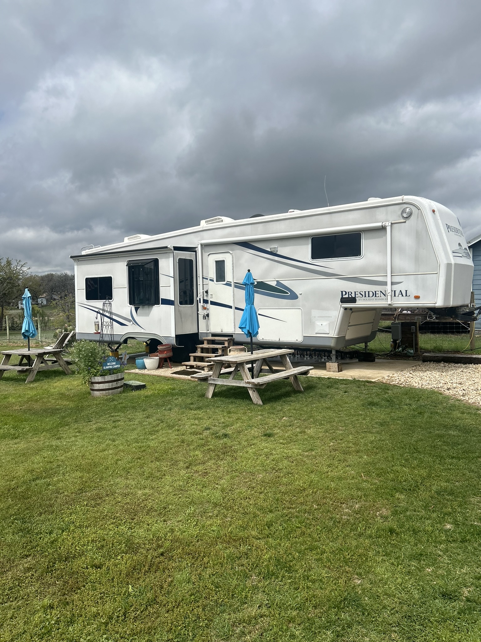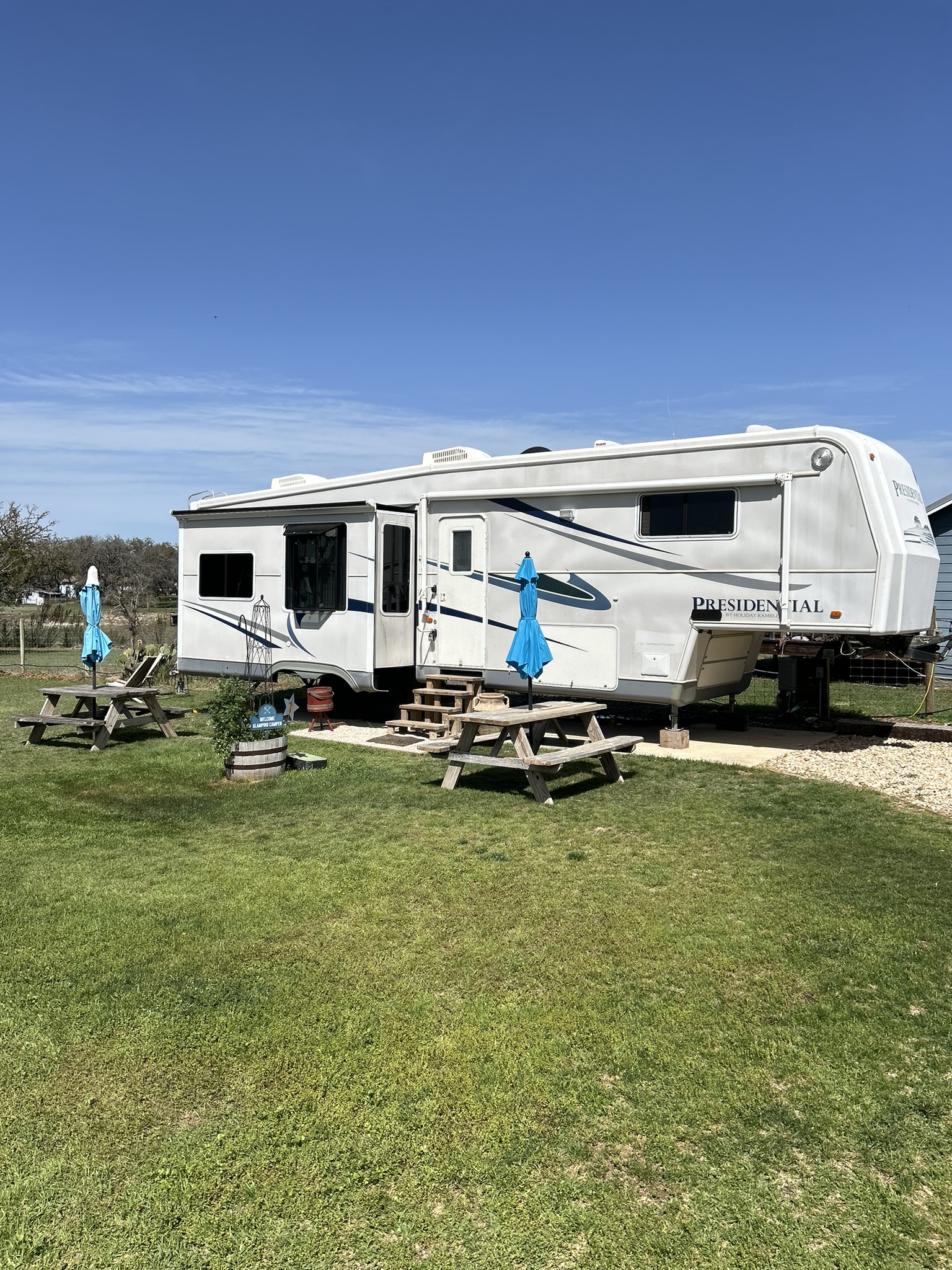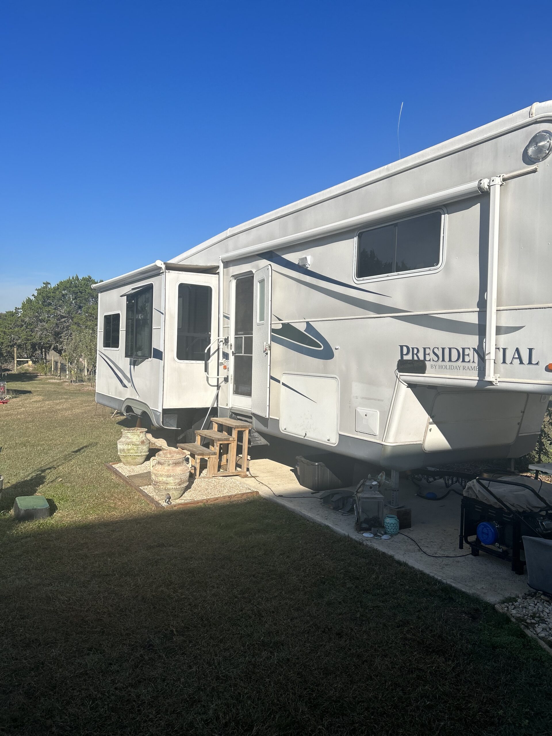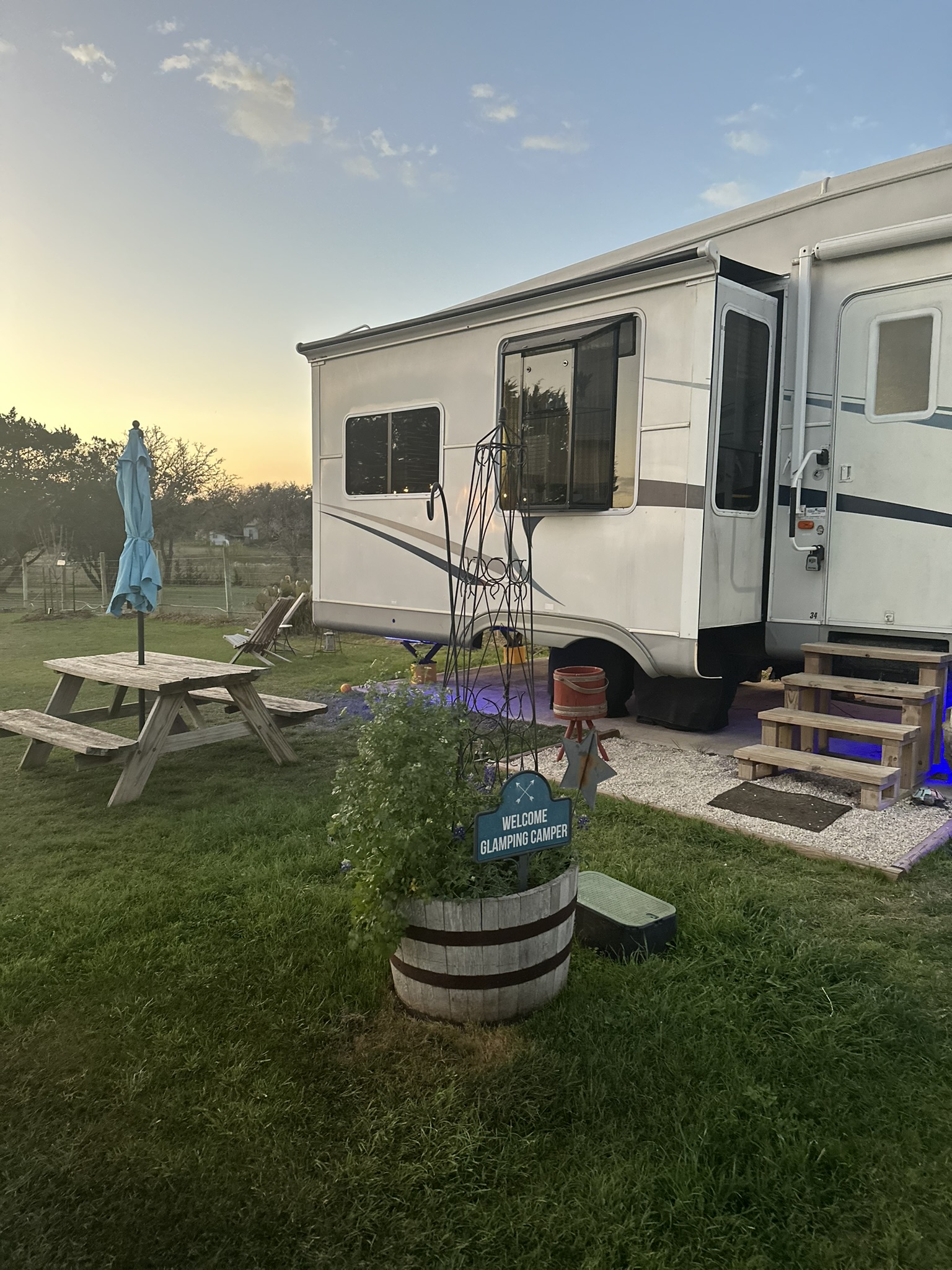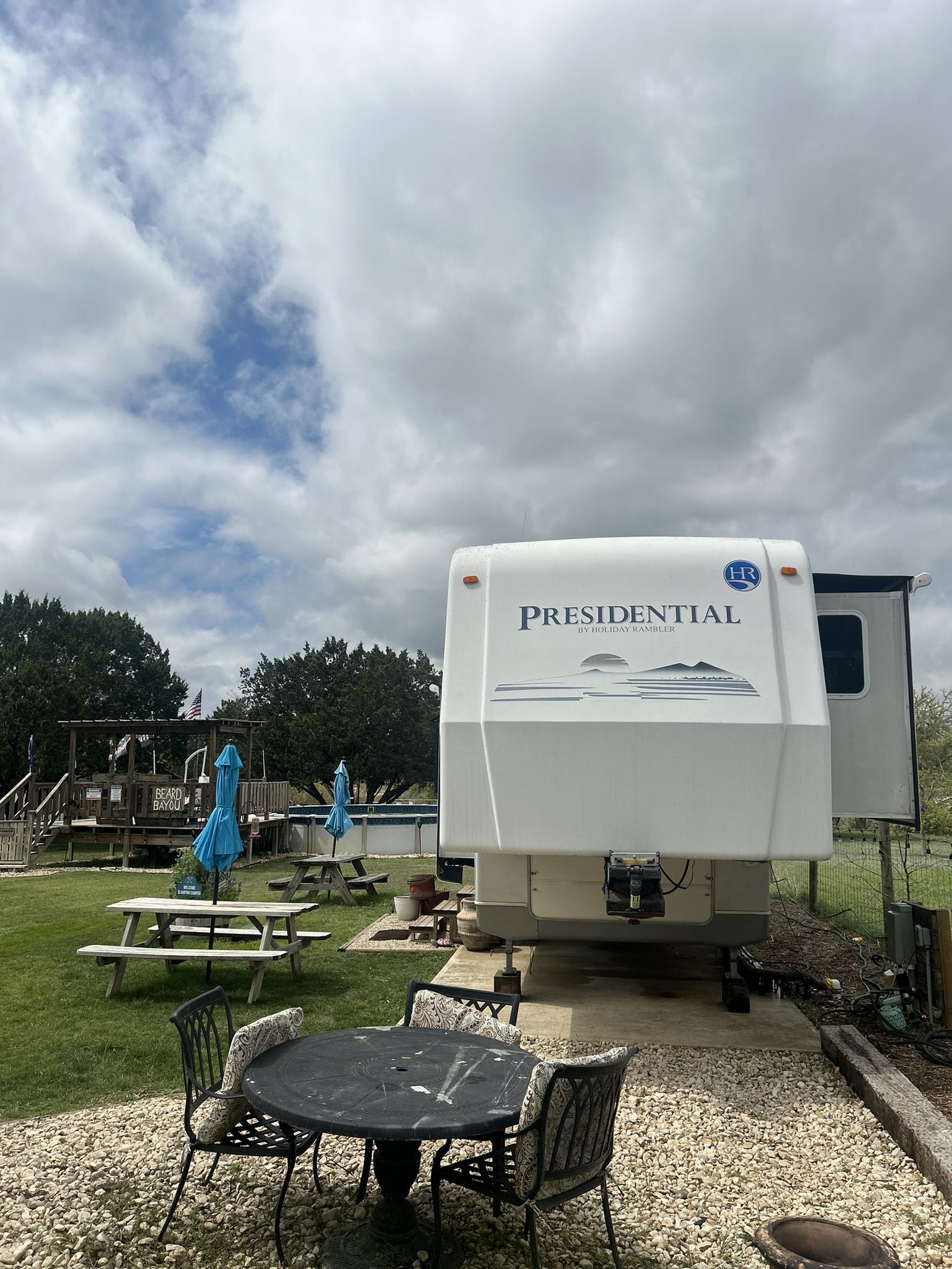 Welcome to The Suite Spot, a Mediterranean-inspired retreat located at the gateway to the Texas Hill Country in Bandera, Texas—the “Cowboy Capital of the World.” Nestled on 1+ acres of serene landscape, our 37-foot Holiday Rambler Fifth Wheel RV offers a unique blend of comfort and rustic charm. With year-round vegetable gardens, egg-laying hens, and an inviting above-ground swimming pool complete with firepits, you’ll find the perfect space to unwind and recharge.