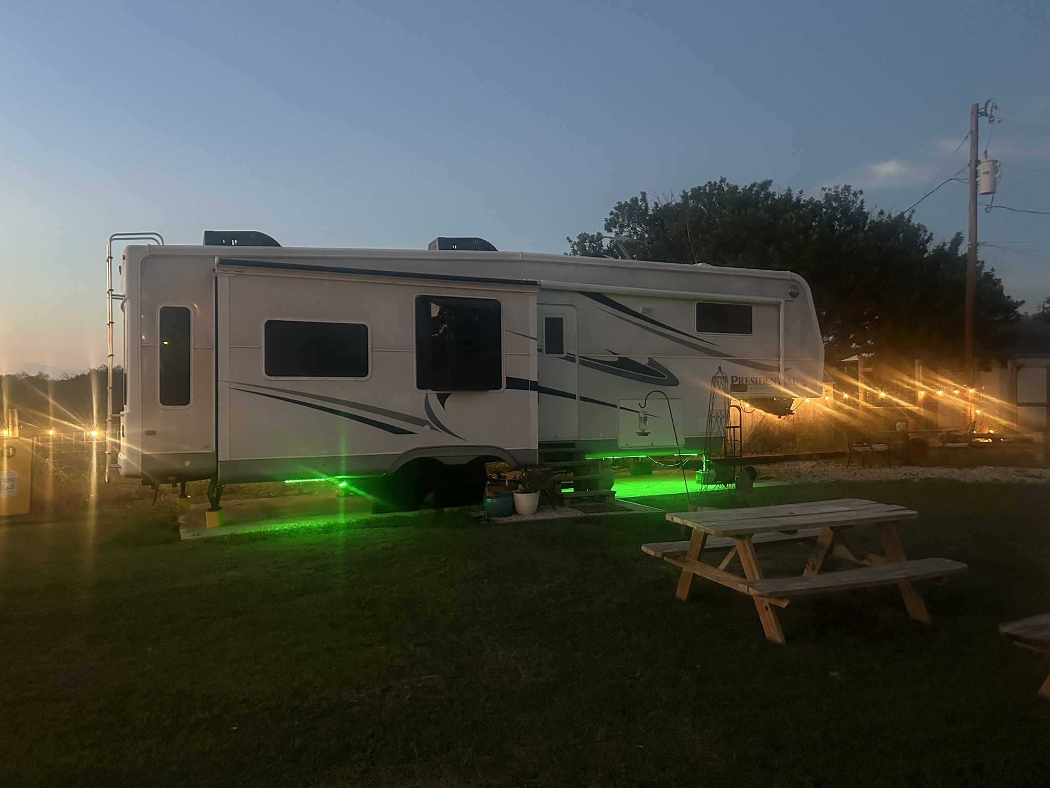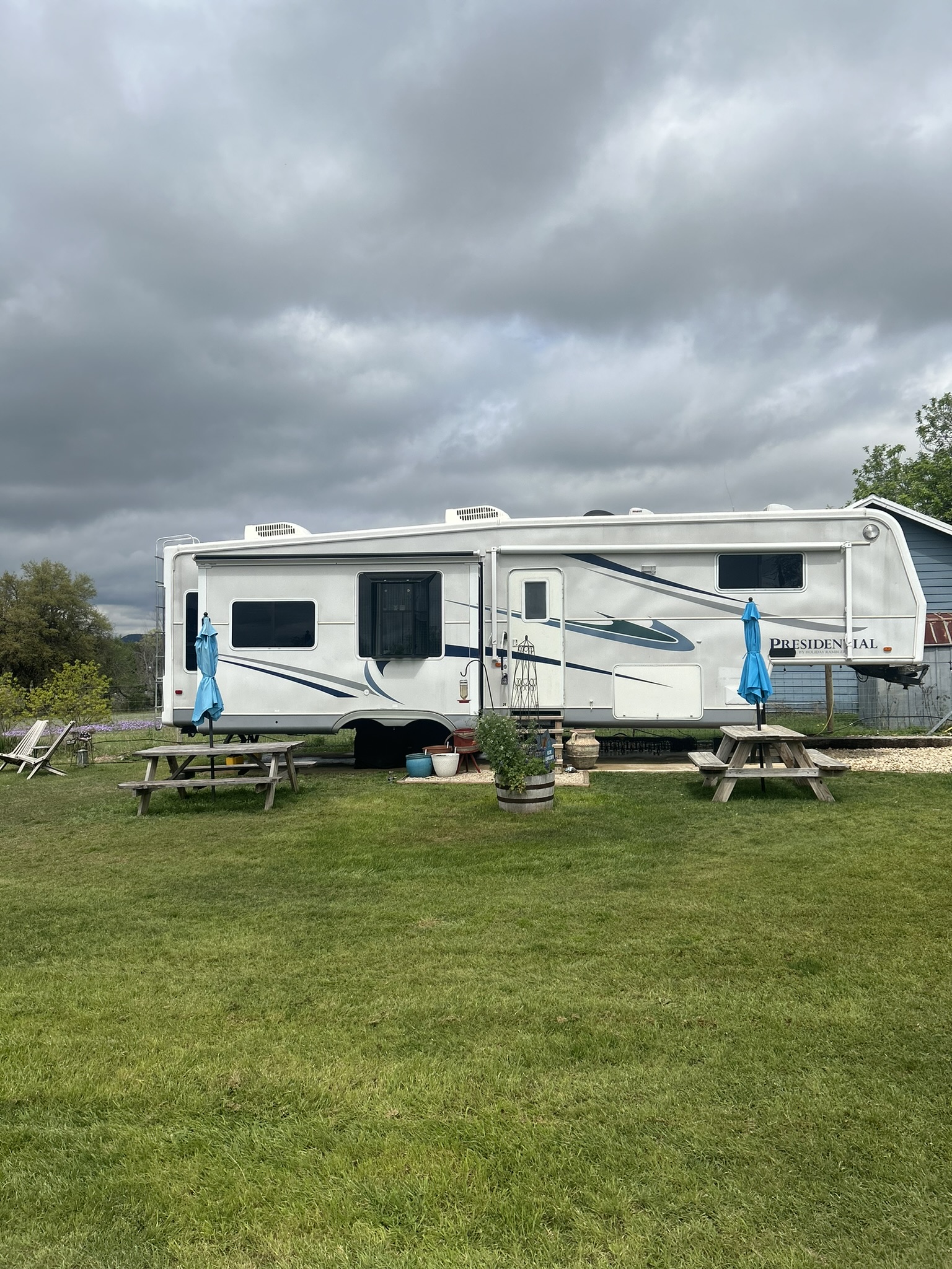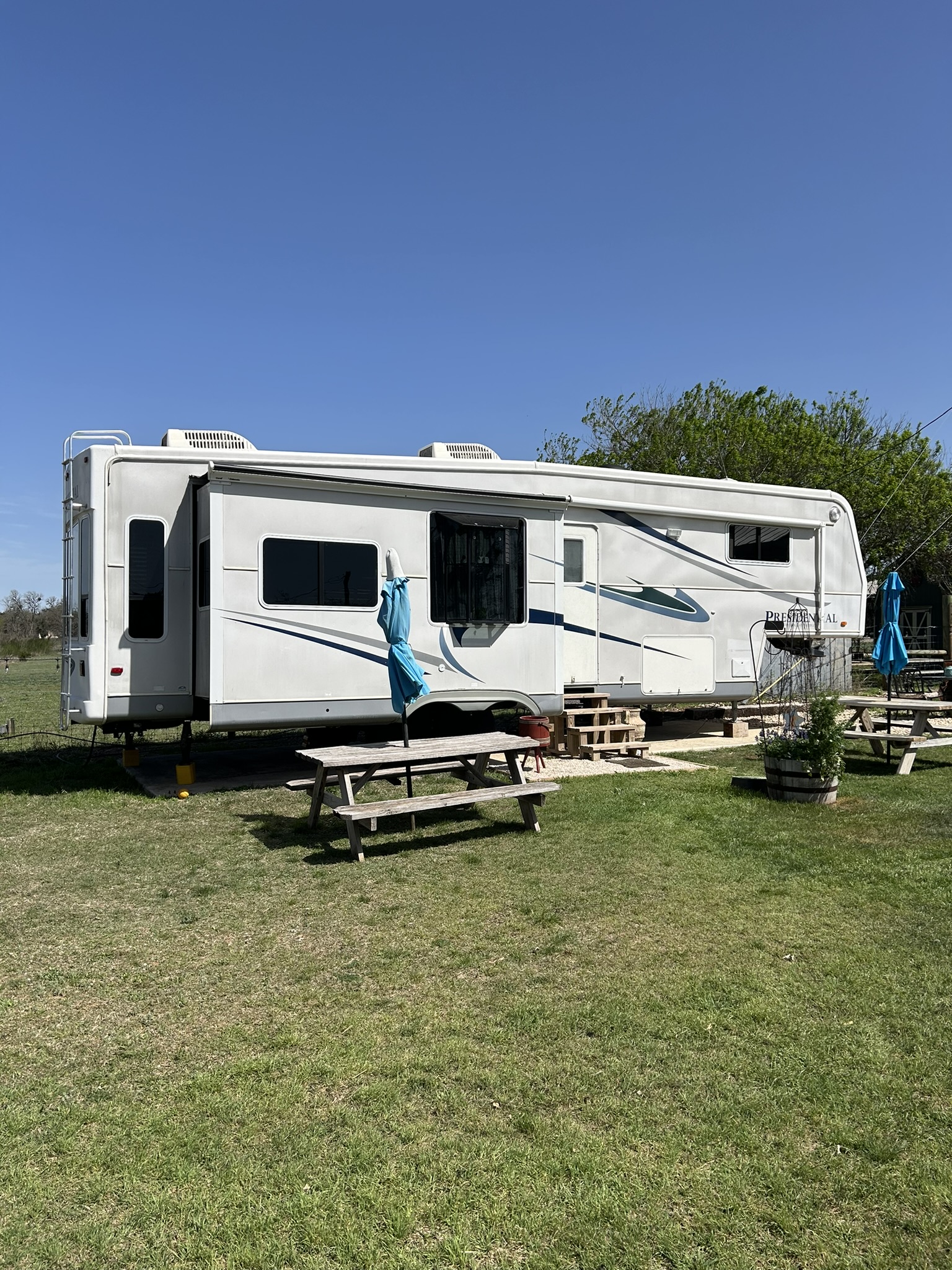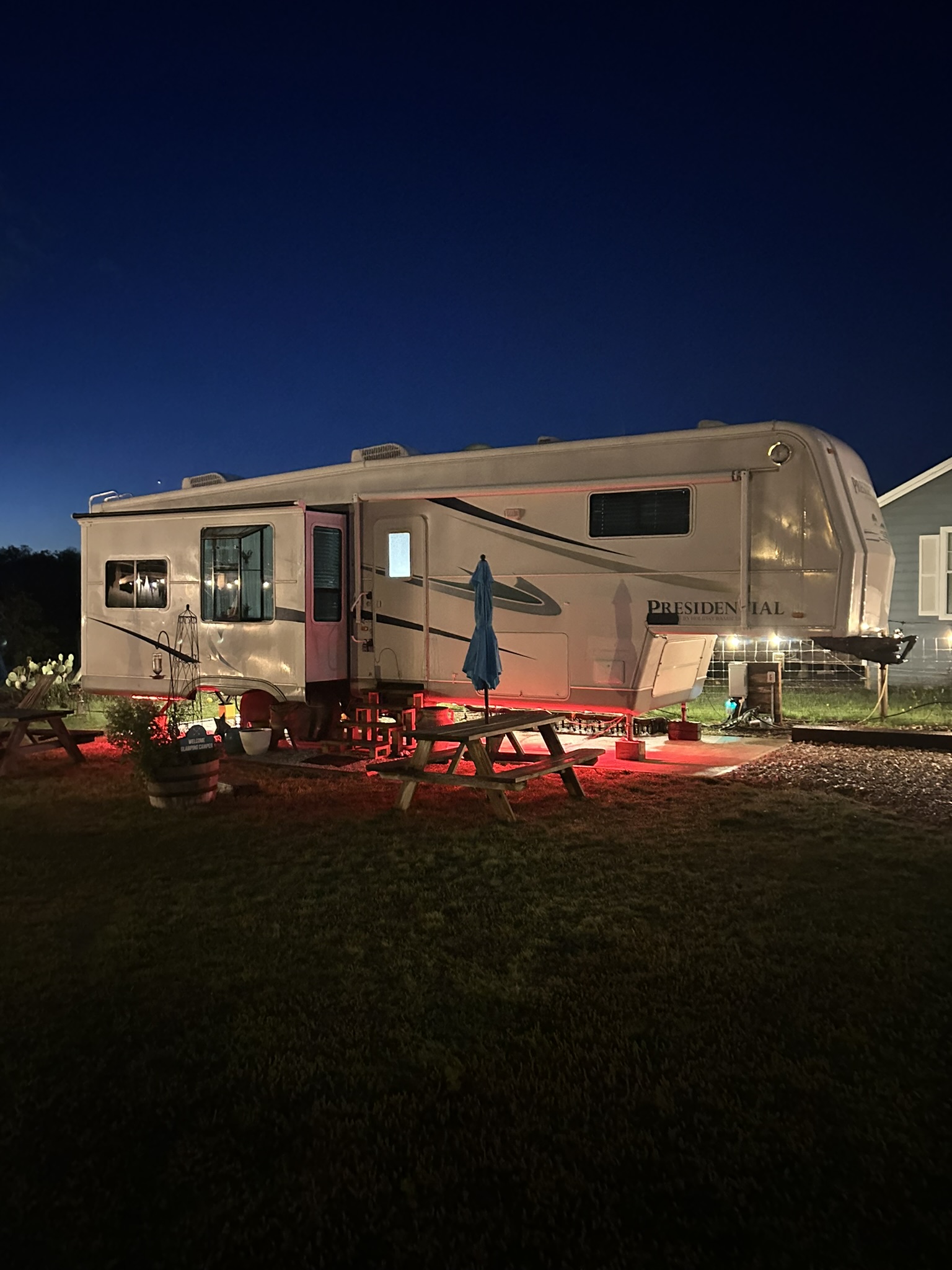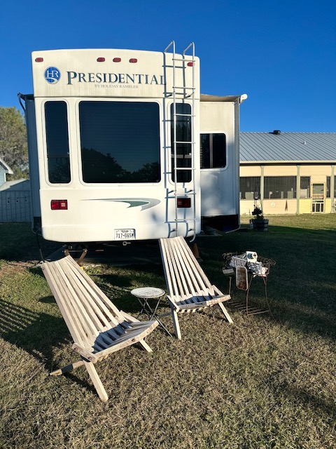 Welcome to The Suite Spot, a Mediterranean-inspired retreat located at the gateway to the Texas Hill Country in Bandera, Texas—the “Cowboy Capital of the World.” Nestled on 1+ acres of serene landscape, our 37-foot Holiday Rambler Fifth Wheel RV offers a unique blend of comfort and rustic charm. With year-round vegetable gardens, egg-laying hens, and an inviting above-ground swimming pool complete with firepits, you’ll find the perfect space to unwind and recharge.