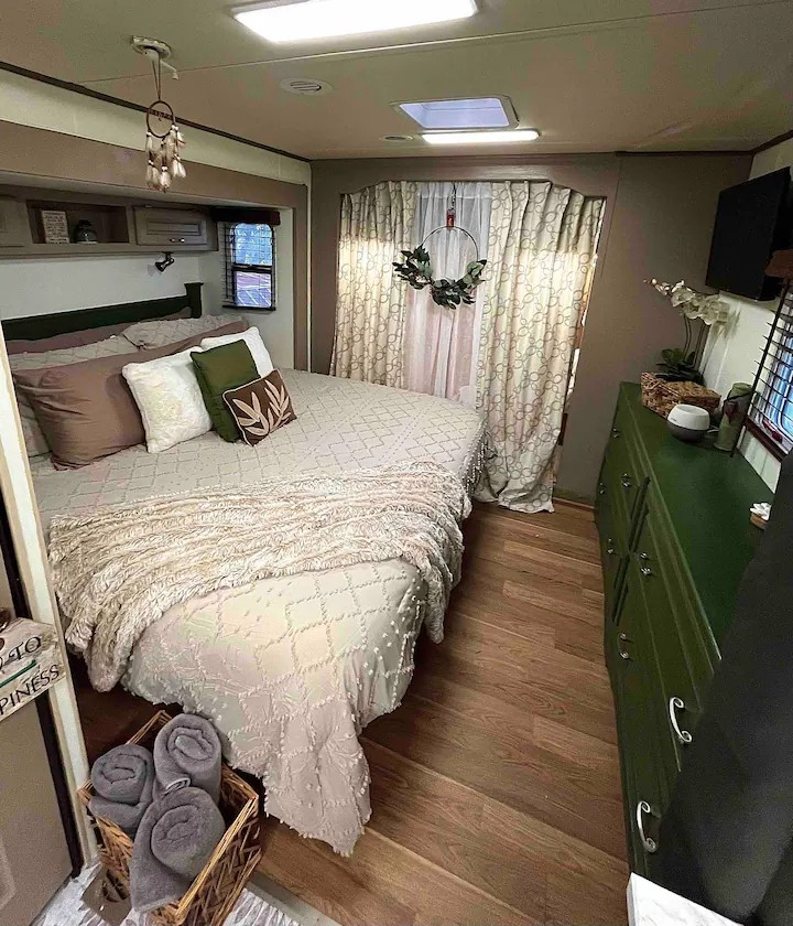 It’s very cozy and has all the amenities you need and if you’re in need of a kitchen it’s equipped with all the specs! We loved all the essentials and essential oils, the bed sheets were so soft and comfy! There’s a sweet touch of “feel like home” in every corner!